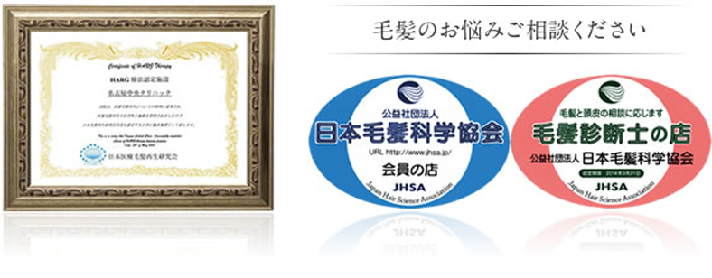 名古屋中央クリニックは日本国内において「当院の治療法」の検証と施設認定を行っている日本医療毛髪再生研究会に施術施設として認定された医療機関です。