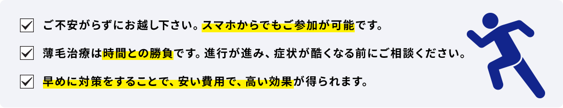 的確に観察する技術など、毛髪に関して徹底的に学んだ医師が担当します